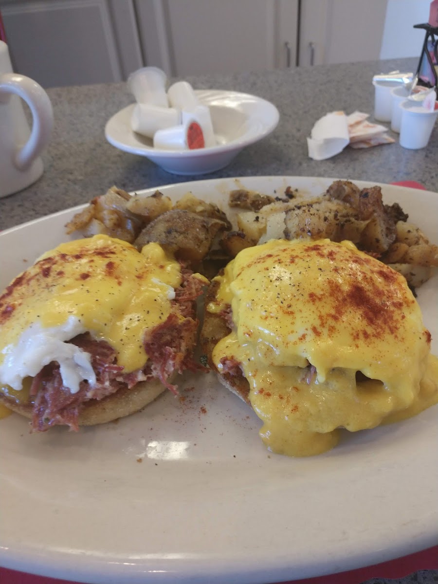 Breakfast with love and then some. We had an awesome breakfast after a red eye flight from Vegas. It was a late breakfast and we had the place to ourselves with Henry. Super nice guy. Best eggs Benedict over corn beef hash, I've had. And the pancakes were melt in your mouth, delicious. He's been around for about 4 years and I wish we would have come sooner. We found our new breakfast spot!!